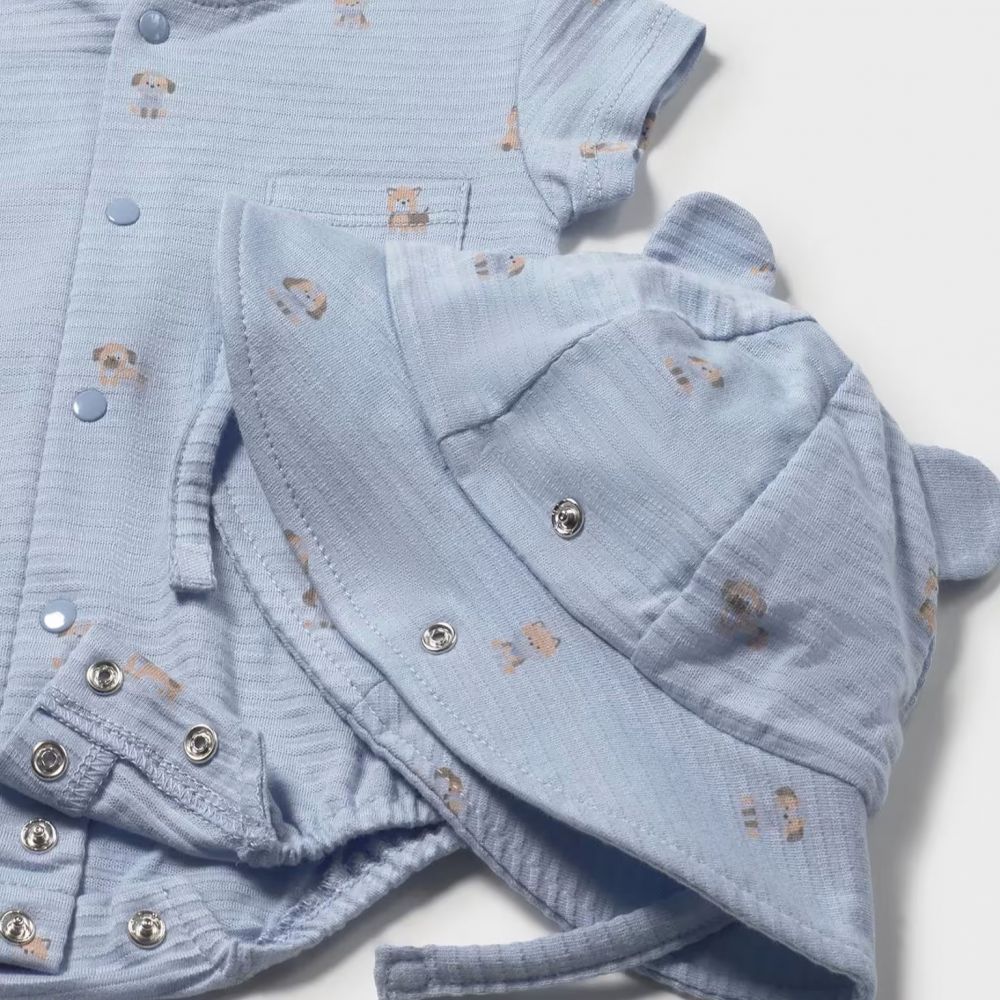 - Σετ με Καπέλο: Συνοδεύεται από ασορτί ριγέ καπέλο με τρισδιάστατα αυτάκια, που προστατεύει το κεφαλάκι του μωρού με τον πιο γλυκό τρόπο.