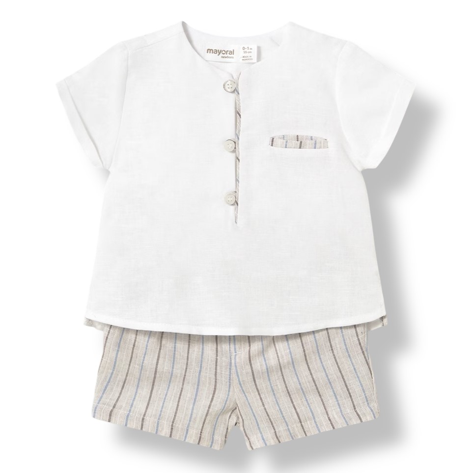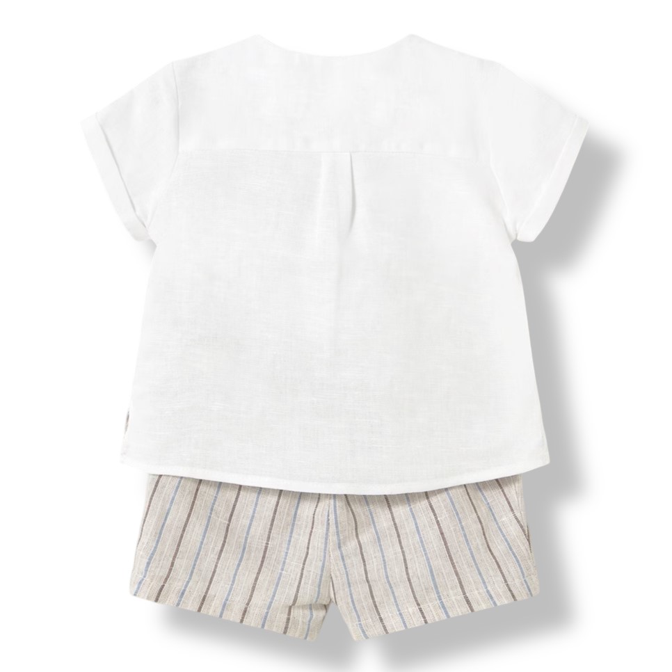 Λινό Βρεφικό Σετ Λευκό Μπεζ
