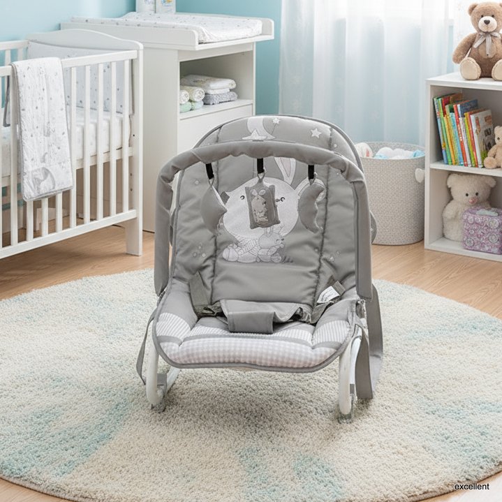 Το ρηλάξ Lorelli Eliza σε γκρι Rabbits είναι μια κομψή και λειτουργική επιλογή που προσφέρει έναν ασφαλή και άνετο χώρο για το μωρό σας.