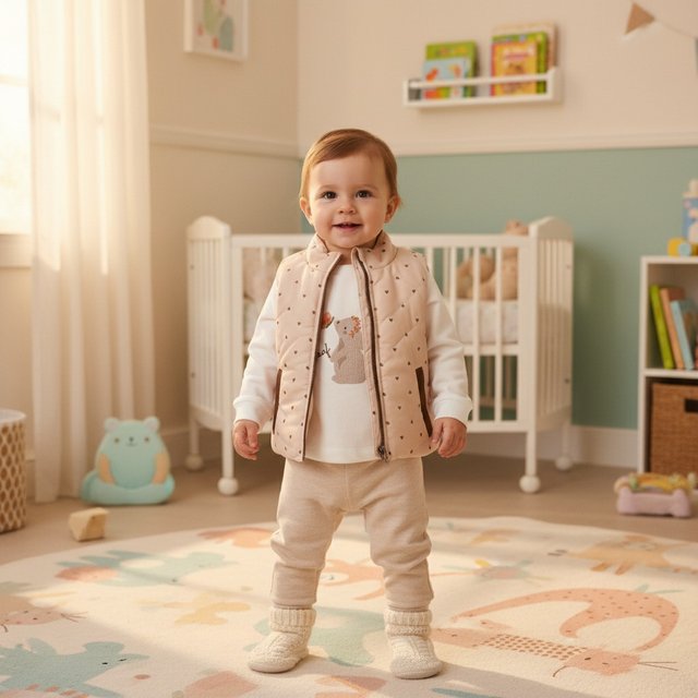 Βρεφικό Σετ Με Γιλέκο Αδιάβροχο Μπεζ