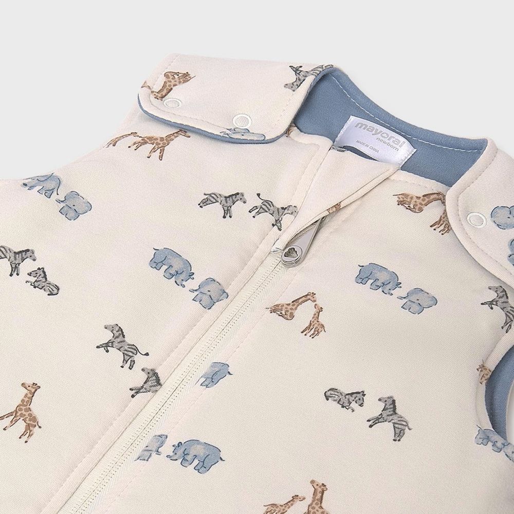 Ο βρεφικός υπνόσακος από τη Mayoral είναι ιδανικός για αγοράκια. Κατασκευασμένος από μαλακό και ποιοτικό ύφασμα, εξασφαλίζει ασφάλεια και άνεση κατά τη διάρκεια του ύπνου. Το πρακτικό φερμουάρ διευκολύνει την αλλαγή πάνας, ενώ το χαριτωμένο σχέδιο με ελεφαντάκια, ζέβρες και καμηλοπαρδάλεις σε μπλε και γκρι αποχρώσεις προσθέτει μια παιχνιδιάρικη νότα. Είναι η τέλεια λύση για να διατηρείται το μωρό ζεστό όλο το βράδυ, χωρίς να χρειάζεται κουβέρτες.